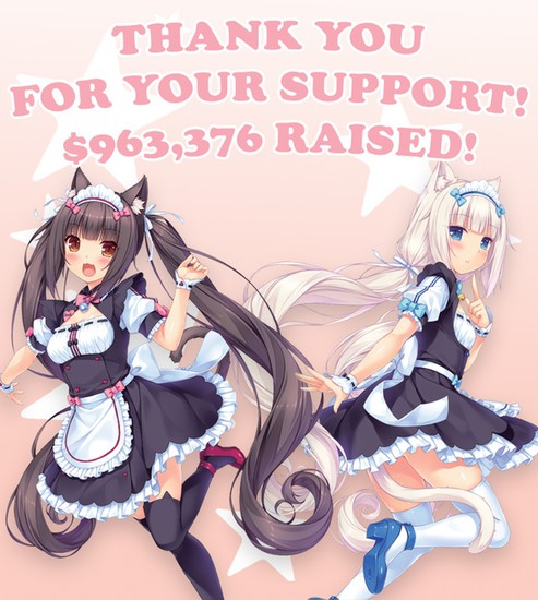 Projeto Sekai Kickstarter campanha para financiar um OVA adaptação de NEKO funciona e Sayori NEKOPARA romance visual adulto terminou no sábado depois de levantar US $ 963.376. Sekai Projeto anunciou neste sábado que a campanha é agora o "mais financiado da Animação no Kickstarter " ( Sob o cão levantou US $ 878.028).