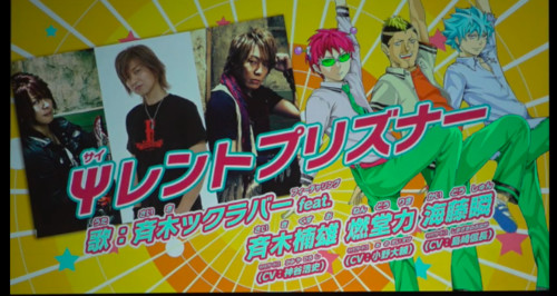 Uma apresentação estágio na Jump Festa 2018 evento no domingo revelou que Hiroshi Kamiya , Daisuke Ono , e Nobunaga Shimazaki irá executar a canção tema de abertura "Prisoner silenciosa" para a segunda temporada de anime baseado em Shūichi Aso 'A vida desastrosa de Saiki K. mangá. Os três atores de voz estão interpretando a música como personagens ao lado do grupo de música Psychic Lover que também compõe a música para a série.